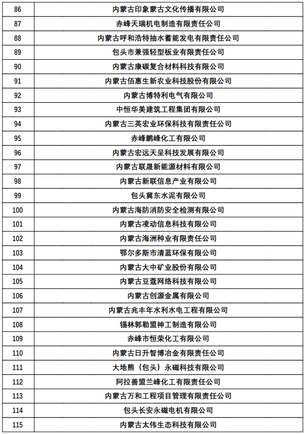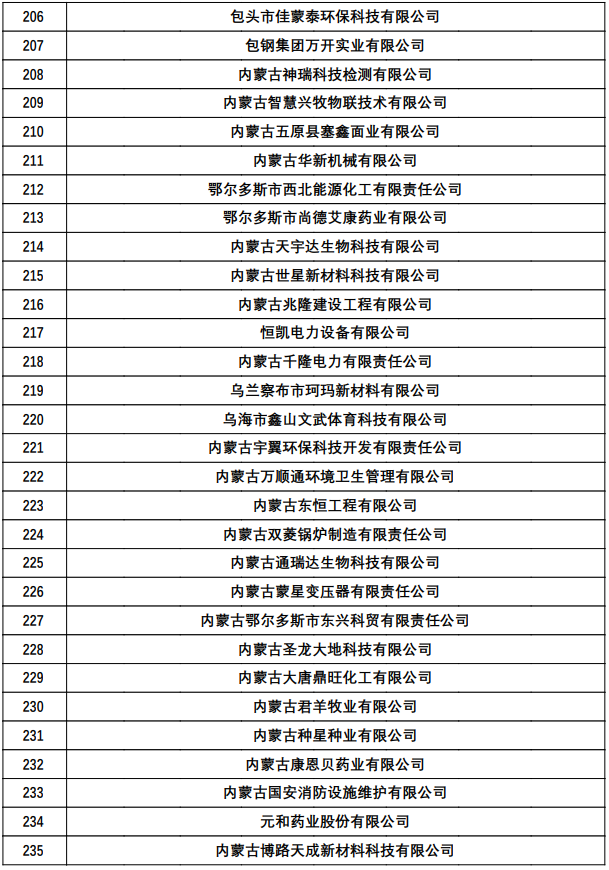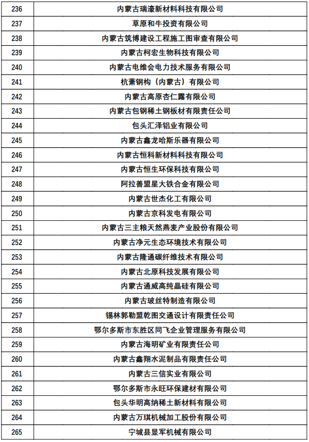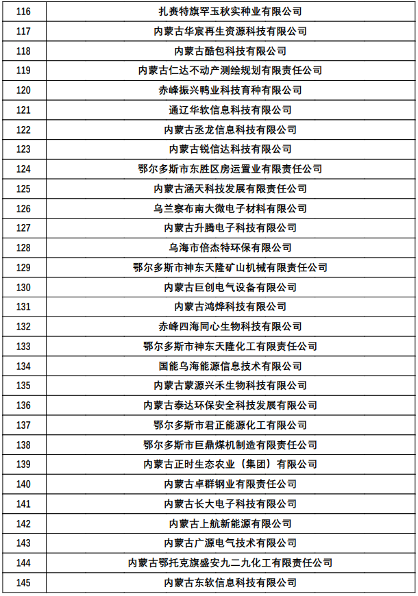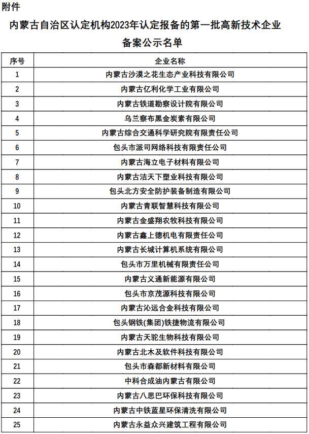 附件:內(nèi)蒙古自治區(qū)認(rèn)定機(jī)構(gòu)2023年認(rèn)定報(bào)備的第一批高新技術(shù)企業(yè)備案公示名單